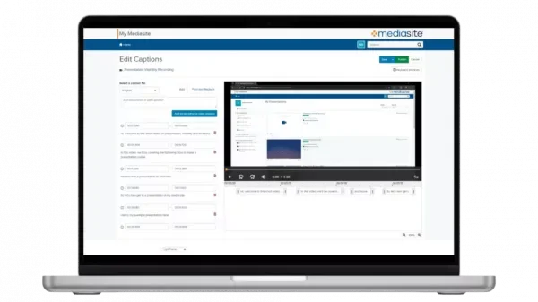 Es ist eine strategische Priorität, Ihr Unternehmenswissen für alle zugänglich zu machen. Daher ist es wichtig, für jedes Video Untertitel, Transkripte und Audiobeschreibungen in verschiedenen Sprachen bereitzustellen. Darüber hinaus ist Mediasite der einzige Anbieter, der einzigartige Funktionen wie anpassbare UI-Themen, legastheniefreundliche Schriftarten, Tastenkombinationen und QR-Codes für einen einfacheren Videozugang bietet.