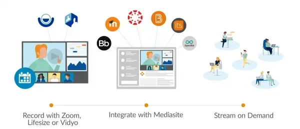 Dank Mediasite können Sie die Wirkung Ihrer Videokonferenzen steigern. Mediasite arbeitet nahtlos mit Vidyo, Lifesize, Zoom, Teams oder jedem anderen Videokonferenz-Tool zusammen.